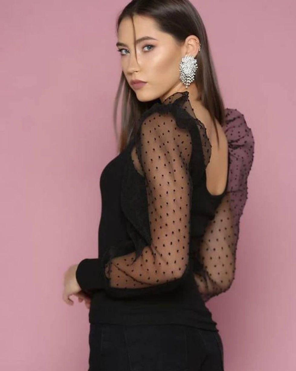 Блуза з прозорими рукавами